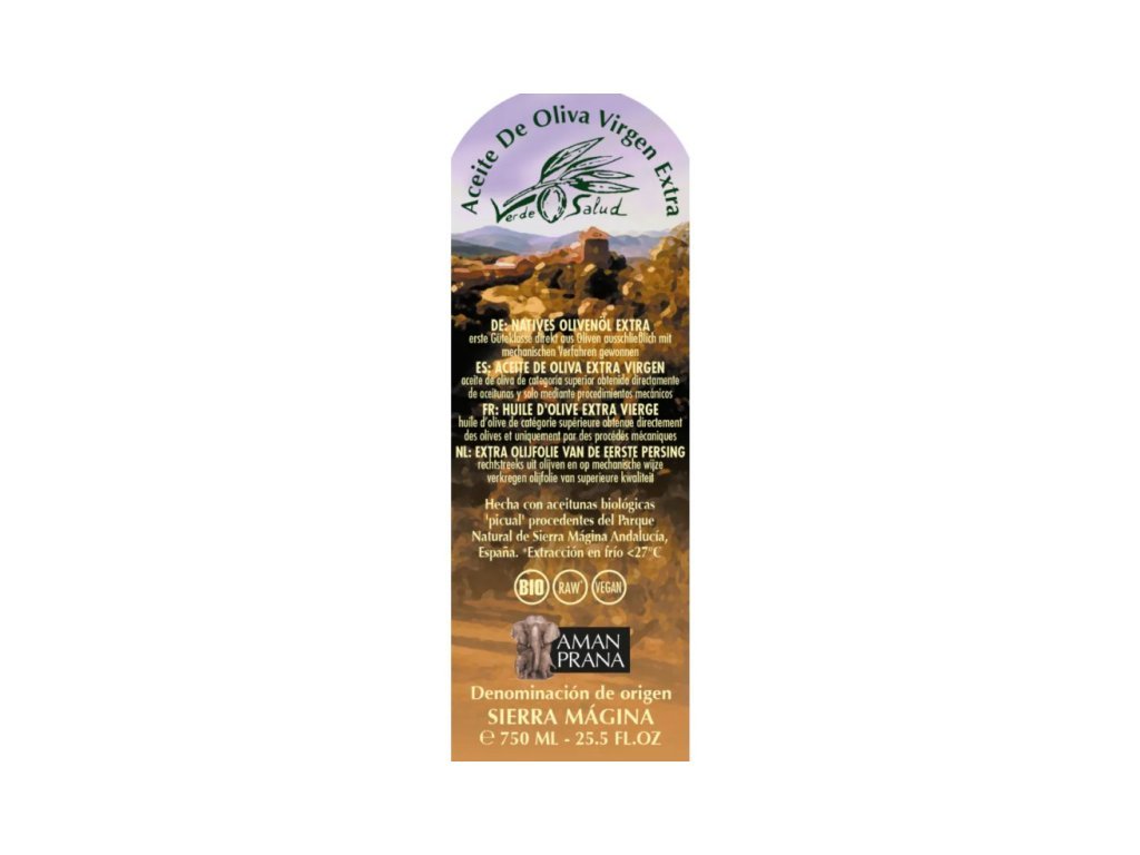 Amanprana Verde Salud je extra panenský olivový olej nejvyšší kvality, vyráběný výhradně mechanickými postupy z ekologicky pěstovaných oliv. Olivy pocházejí ze slunných svahů přírodního parku Sierra Mágina v Andalusii – jedné z nejuznávanějších oblastí pro pěstování oliv ve Španělsku.