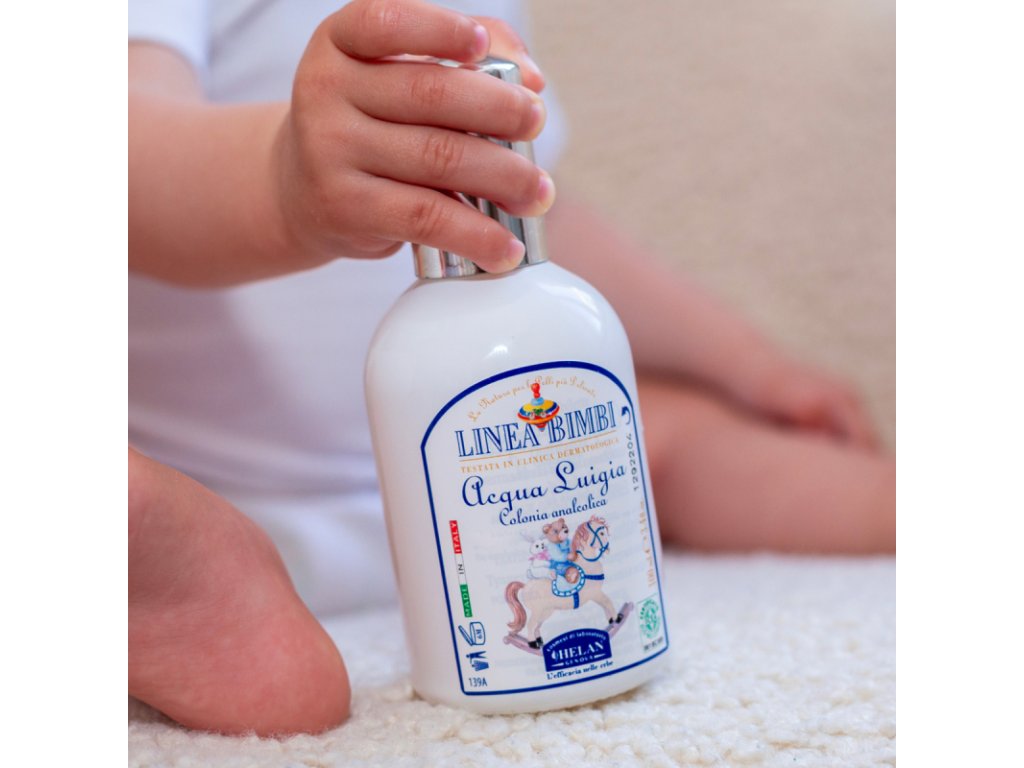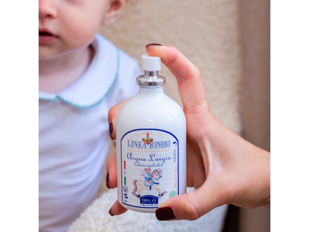 Linea Bimbi Acqua Luigia je dětská kolínská voda bez alkoholu, speciálně vytvořená pro citlivou a jemnou dětskou pokožku. Přírodní esence z pomerančových listů a květů, heřmánku, pelargonie, levandule a růžového dřeva (bois de rose) se snoubí s listy rozmarýnu, olejem šalvěje muškátové, Petitgrain a plody Litsea cubeba. Výsledkem je svěží, lehce citrusová vůně, která příjemně stimuluje čich a zároveň působí uklidňujícím dojmem. Formule má ortodermické pH a je zcela bez parabenů, fenoxyethanolu, EDTA a PEG. Ideální pro každodenní hygienickou péči o dítě.