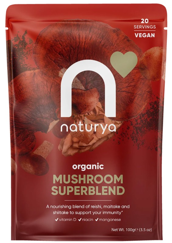 Pro udržitelnost zdroje jsme kombinovali naše sušené červené reishi pěstované na Duanu s živinami nabitými houbami maitake a shiitake a poté je rozemleli na jemný prášek, čímž jsme vytvořili doplňkovou směs vyživujících hub.