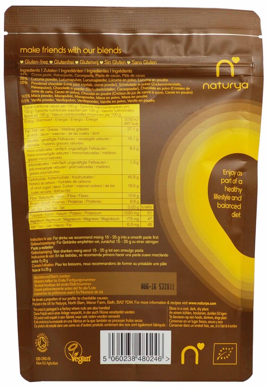 Směs nejjemnějšího čokoládového krému, práškové čokolády, ovoce lucuma a prášku z maca a vanilky je nabitá draslíkem, hořčíkem, vlákninou, aminokyselinami a bílkovinami. Perfektní sladká a zdravá kombinace.