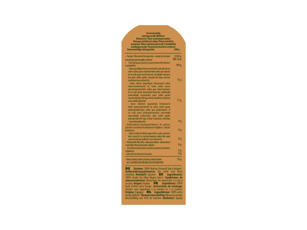 Natives Olivenöl extra. Hochwertiges Olivenöl, das direkt aus den Oliven mechanisch gewonnen wird.