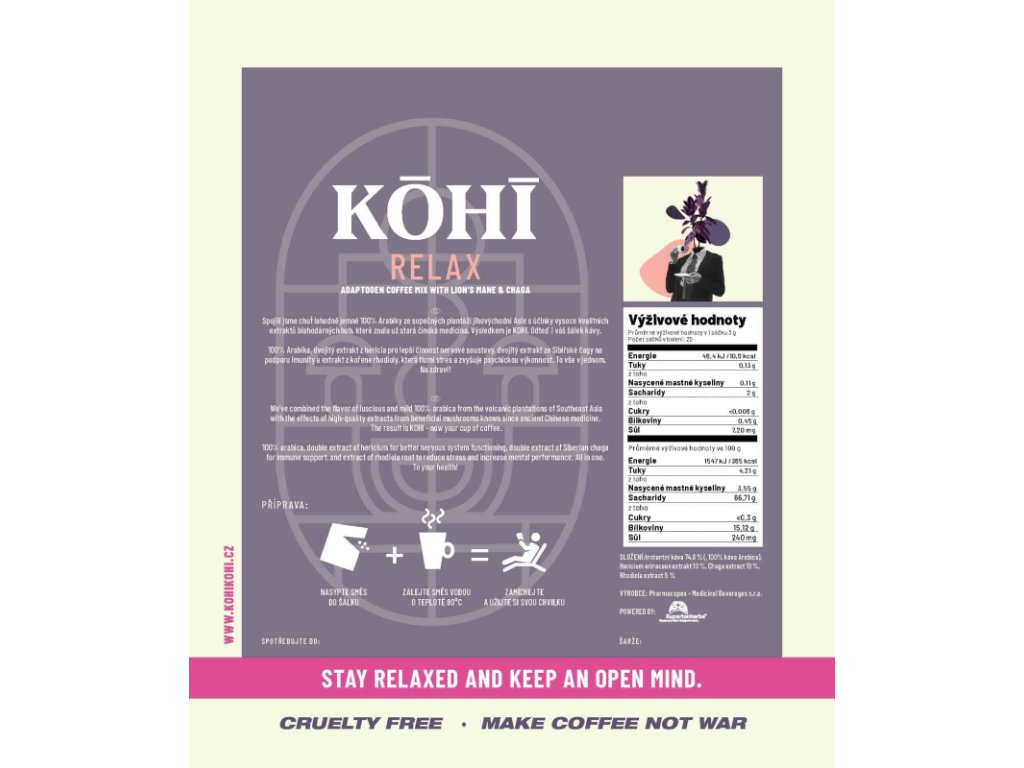 KOHI-RELAX Kaffee - ADAPTOGEN KAFFEEMISCHUNG MIT LÖWE MIT MÄHNE & CHAGA