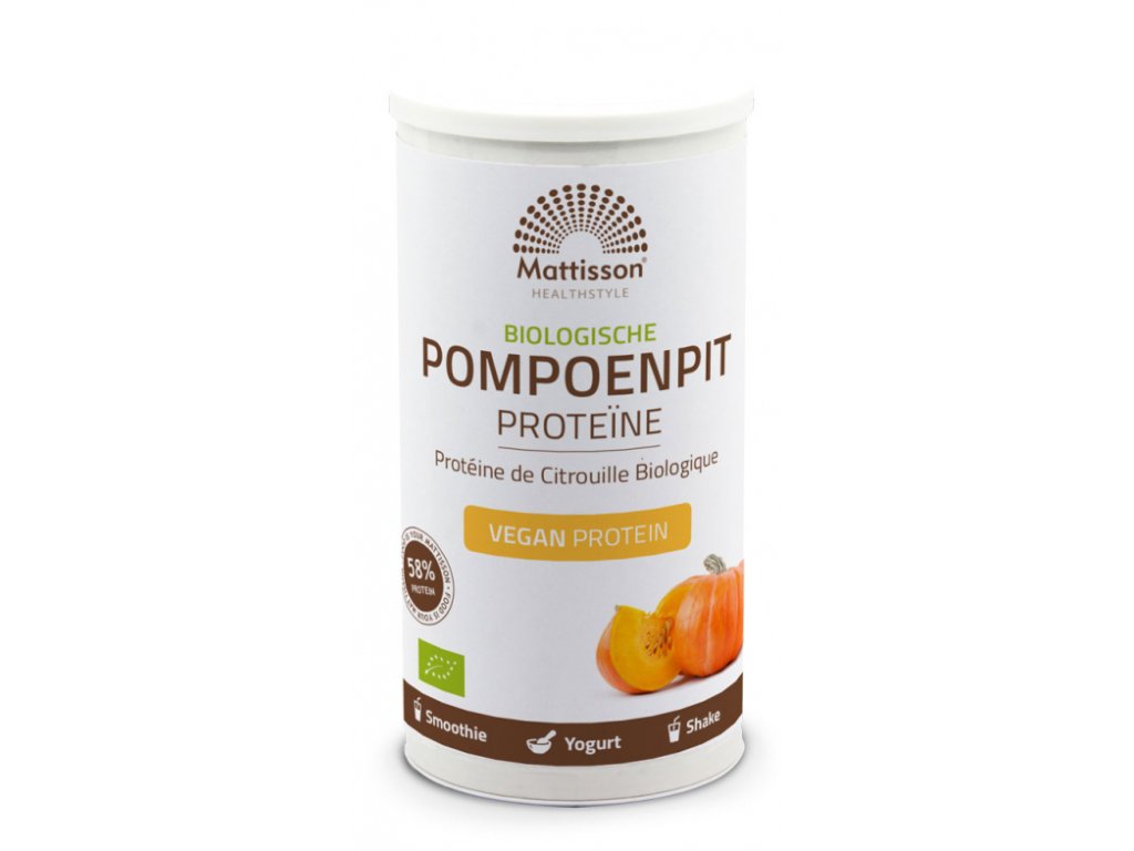 Mattisson Kürbiskernprotein ist eine Proteinquelle und enthält 58 g Protein pro 100 g Produkt. Proteine sind lebensnotwendig für unseren Körper; sie sind die Bausteine unserer Zellen und Gewebe. Protein trägt zum Erhalt und Aufbau von Muskelmasse sowie zur Erhaltung normaler Knochen bei.