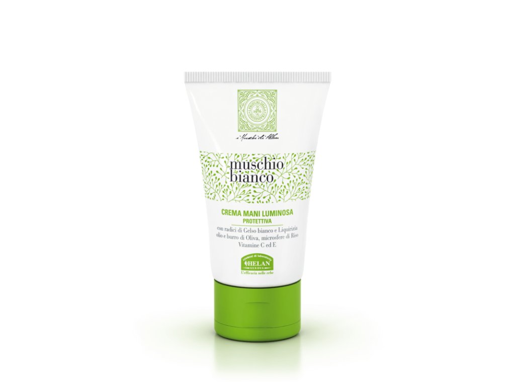 Diese Creme vereint natürliche, wirksame und sanfte Inhaltsstoffe, darunter Extrakte aus weißer Maulbeerwurzel und Süßholz, die einen aufhellenden Effekt unterstützen. Die Kombination aus Reismikrosphären und den Vitaminen C und E, starken Antioxidantien, verleiht der Haut Strahlkraft und Festigkeit. Angereichert mit pflegendem und geschmeidig machendem Olivenöl und Sheabutter, einem feuchtigkeitsspendenden Zuckerkomplex und einem UV-Filter. Die leichte und seidige Textur sorgt für ein schnelles Einziehen der Wirkstoffe und hinterlässt ein zartes und strahlendes Hautgefühl an den Händen.