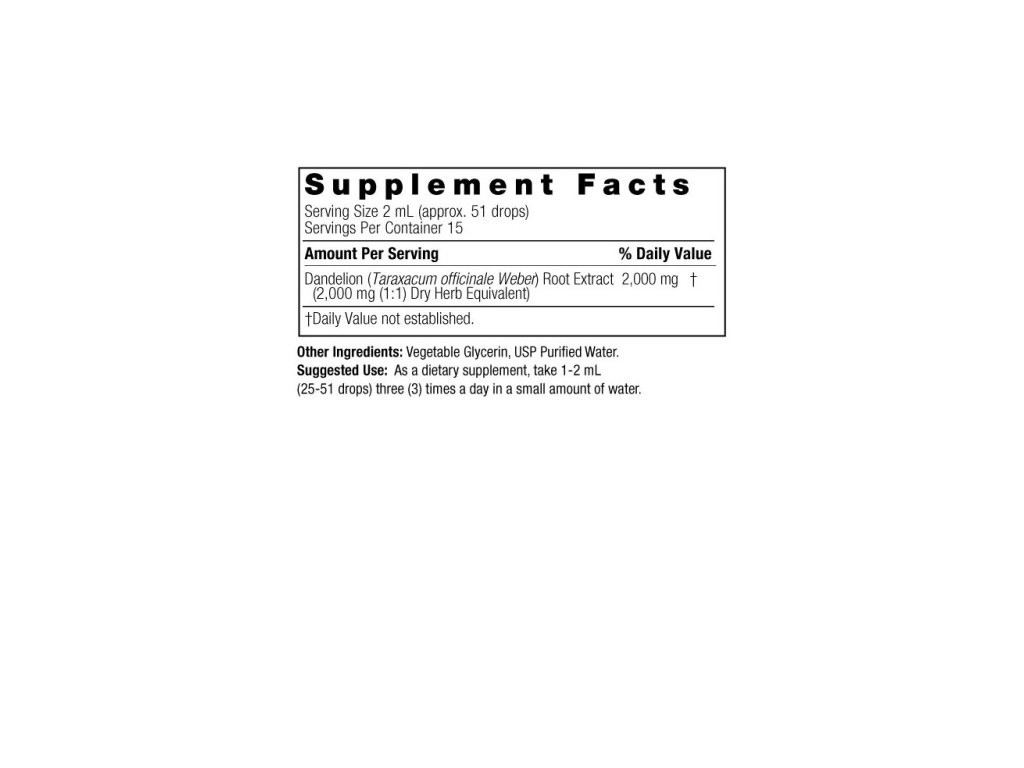 Nature’s Answer® Löwenzahnwurzel-Flüssigextrakt ist wirklich einzigartig. Ein Vergleich der Milligramm pro Portion zeigt: 2 Tropfen (2 ml) enthalten 2.000 mg getrocknetes Löwenzahnkraut – eine deutlich höhere Konzentration als bei einer Kräutertinktur. Nature’s Answer® Löwenzahnwurzelextrakt ist alkoholfrei, vegan, gentechnikfrei und wurde nicht an Tieren getestet. Von unserer Familie für Sie – seit 1972!