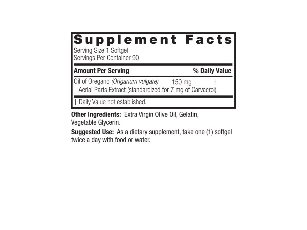 Nature’s Answer Oreganoöl-Kapseln sind eine hervorragende Möglichkeit, Ihr Immunsystem zu stärken und Ihre Verdauung zu unterstützen*. Nature’s Answer bietet 150 mg reines, ganzheitliches Oreganoöl, standardisiert auf 7 mg des Wirkstoffs Carvacrol. Jede leicht zu schluckende Weichkapsel enthält natives Olivenöl extra.