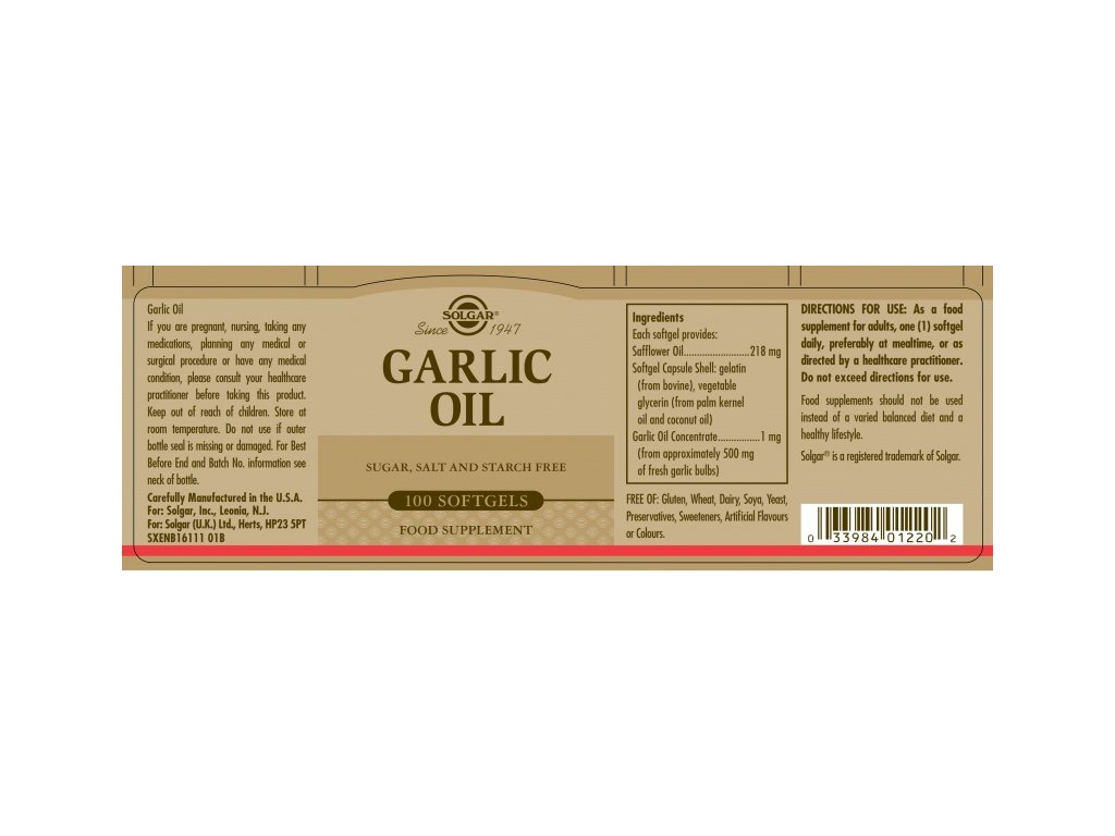 Nahrungsergänzungsmittel mit Knoblauch. Knoblauchölkonzentrat aus 500 mg frischem Knoblauch – geruchlos.