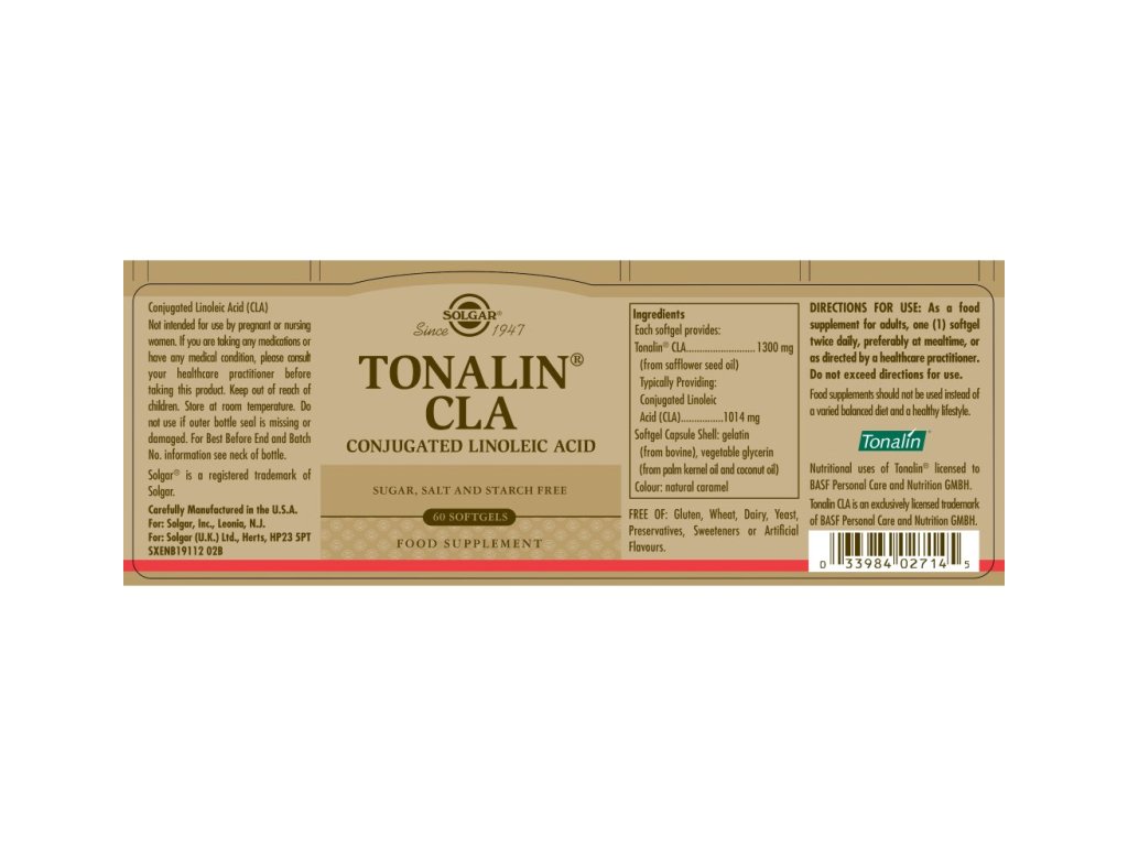 Nahrungsergänzungsmittel – Solgar Tonalin CLA – Konjugierte Linolsäure, 60 Kapseln. CLA – Tonalin® aus Distelöl, 1300 mg.