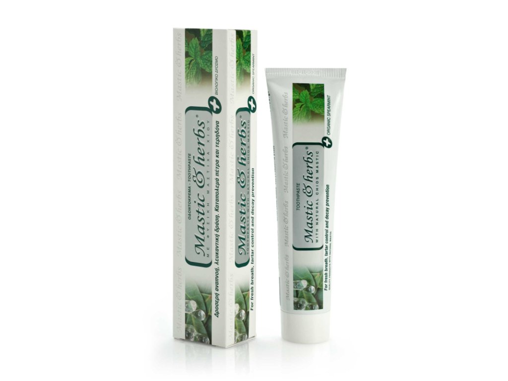 Natürliche Zahnpasta mit Mastixöl und Bio-Minze.