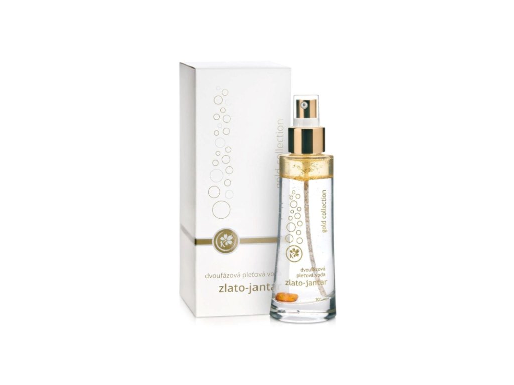 - Two-phase Gold-Amber toner with 24-carat gold and Baltic amber