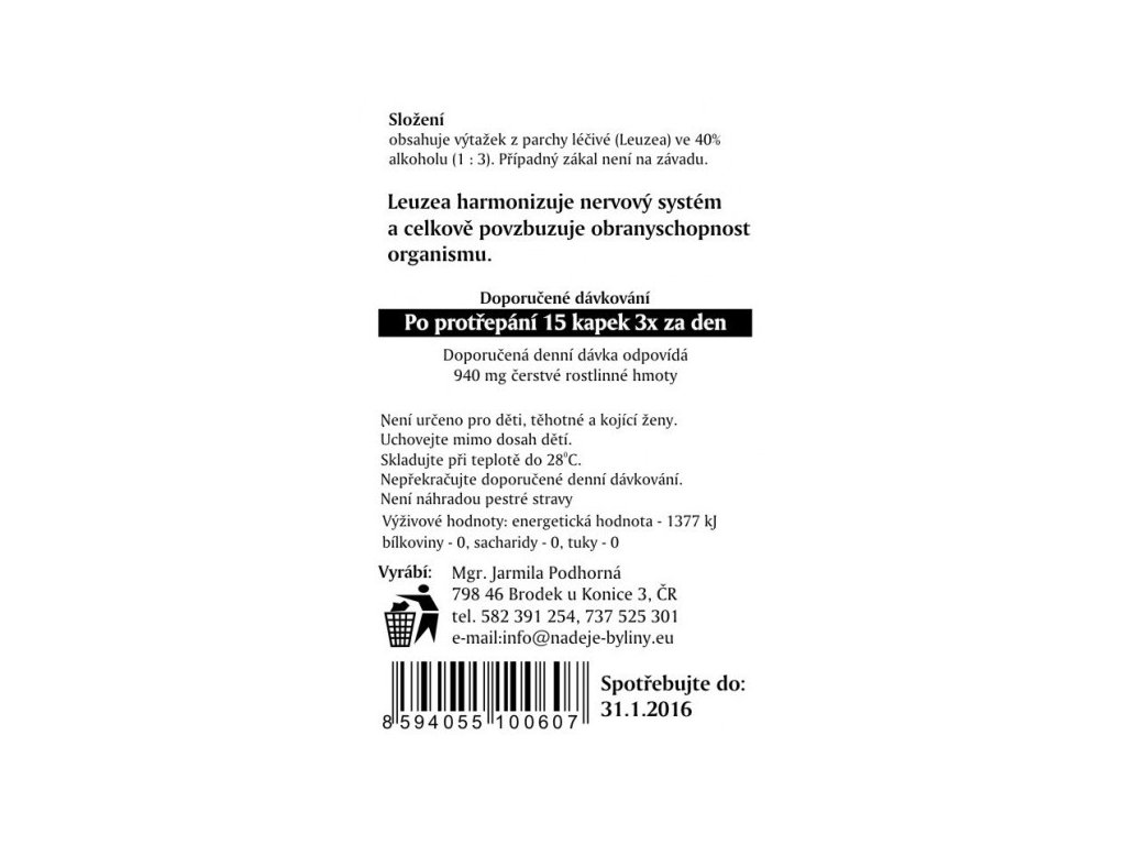 Leuzea or Maral root shows tonic and immunostimulating effects similar to ginseng. It encourages mental activity, stimulates life processes, helps the body adapt to stress. It has a positive effect on the activity of the heart and blood vessels. It is suitable for the treatment of postoperative conditions and long-term diseases.