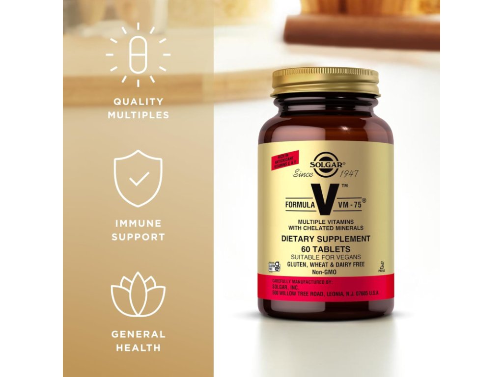 Formula VM-75 from Solgar is the number one among multivitamins in the natural products industry. "75" means that VM 75 contains 75 mg of most B vitamins. In December 2002, it was awarded the "Best Food Supplement" award by HFB magazine for Vitamin Supplement - Vegetarian Tablets.