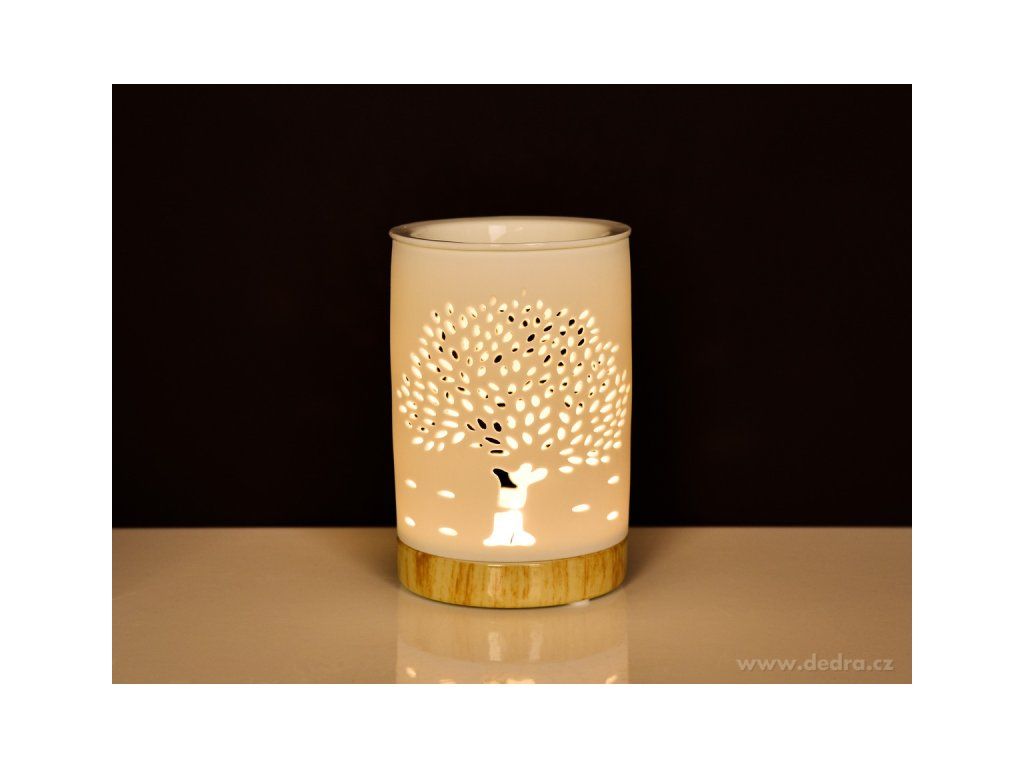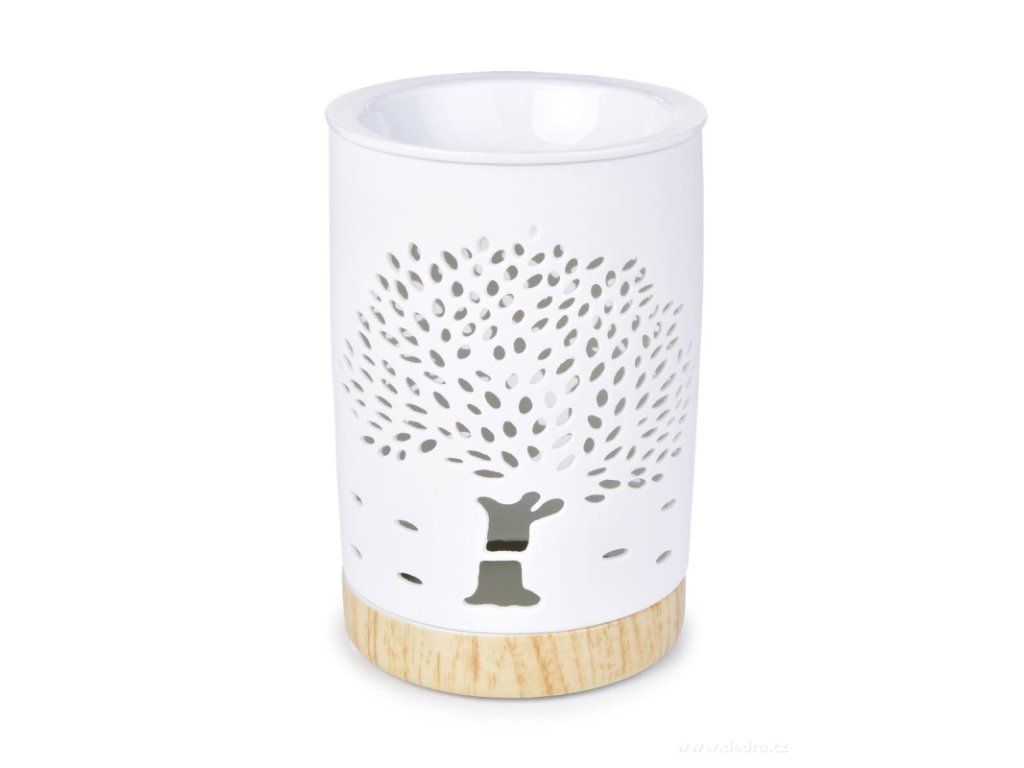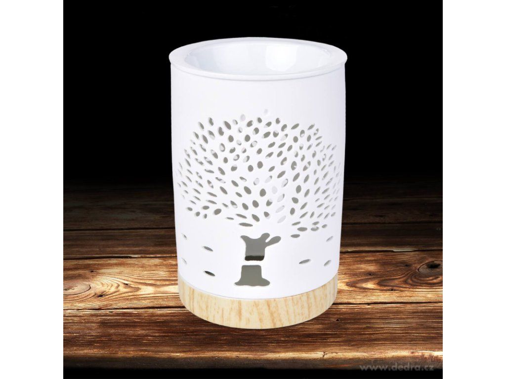 XXL Ceramic aroma lamp with deep bowl, matte glaze with tree decor. Diameter 9.5 cm, height 14.5 cm. Thanks to the holes in the tree decor, it creates beautiful lighting effects.