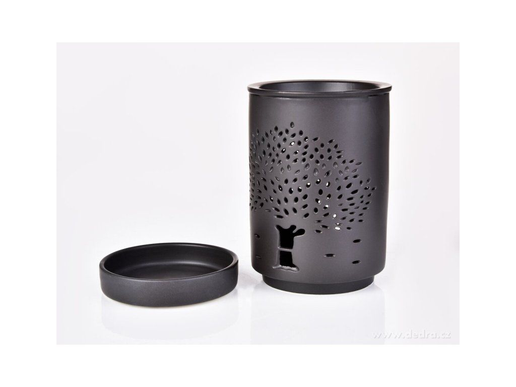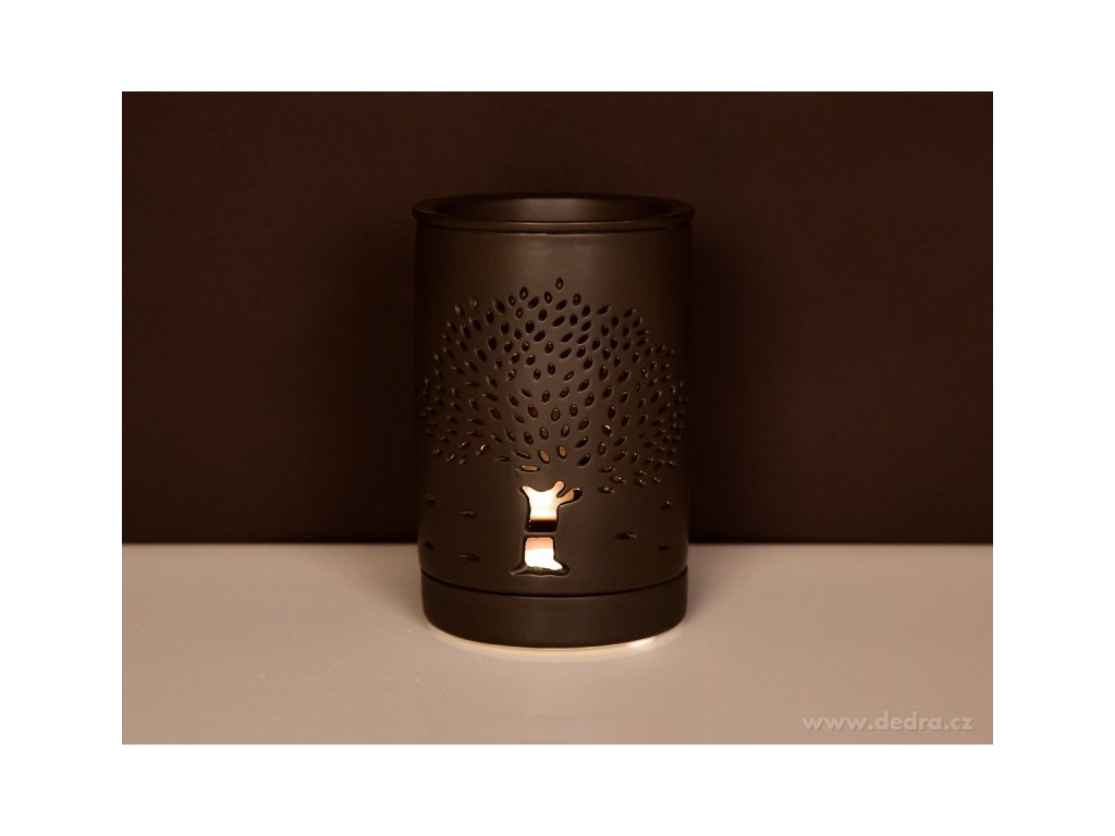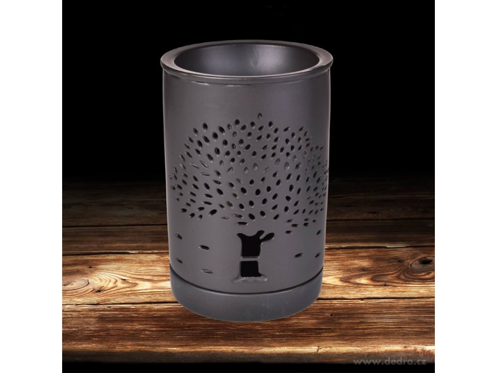 XXL ceramic aroma lamp with lace tree decor and deep bowl. Double-sided motif, removable bottom bowl for easy insertion of a candle.