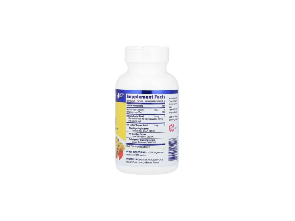 Enzymedica Acid Soothe – 90 kapslí je jedinečný doplněk stravy navržený k podpoře zdraví žaludeční sliznice a k úlevě od občasného pálení žáhy. Kombinuje sílu enzymů, zklidňujících bylin a patentovaného PepZinGI® zinku-karnosinu, který chrání a regeneruje žaludeční sliznici. Tento produkt pomáhá rozkládat potraviny vyvolávající pálení žáhy, zmírňuje nepříjemné pocity a podporuje celkové zdraví trávicího systému.
