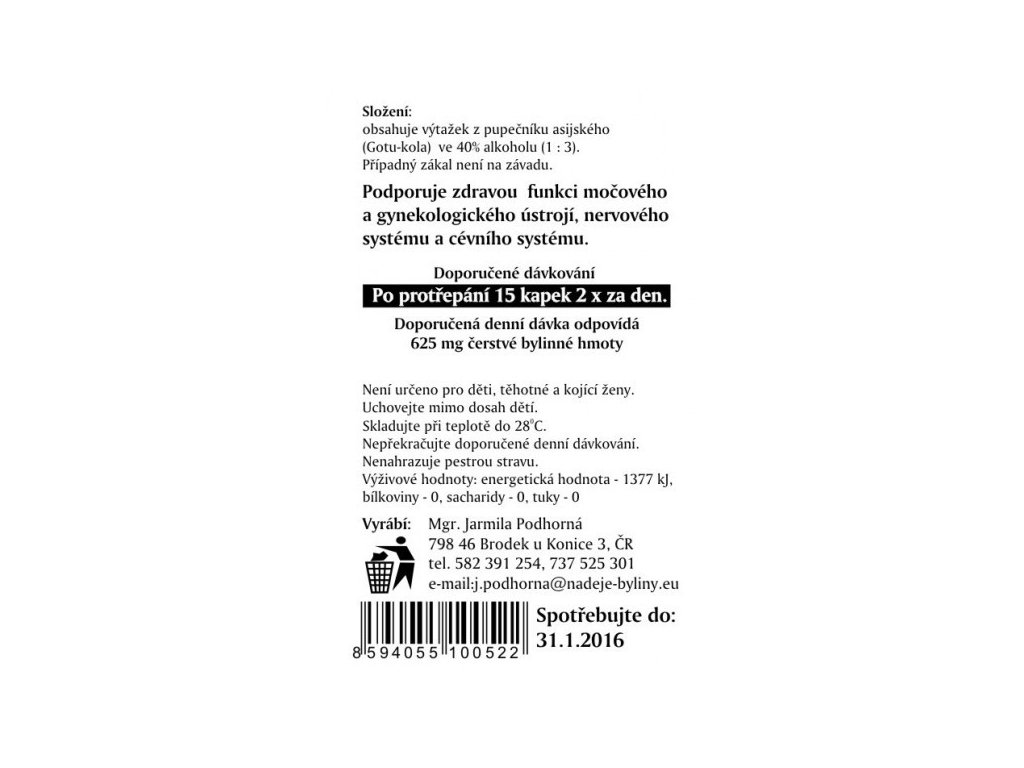 Extracto de hierbas, 40 % de alcohol.