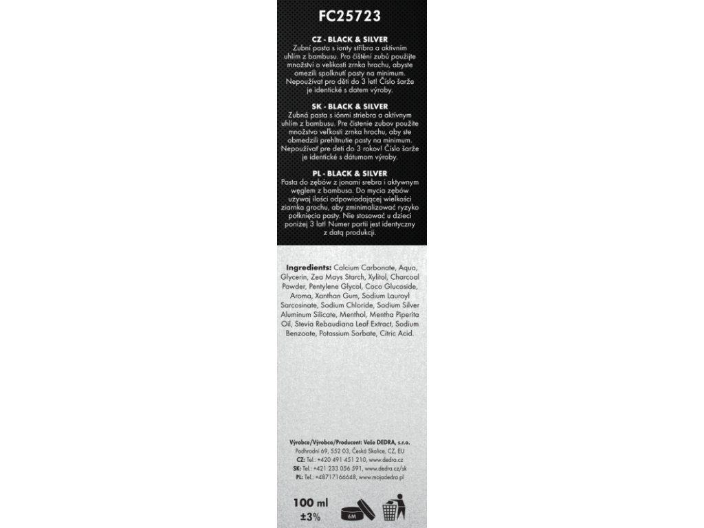 DEDRA DENT® pasta de dientes BLACK & El paquete SILVER XXL de 100 ml contiene: