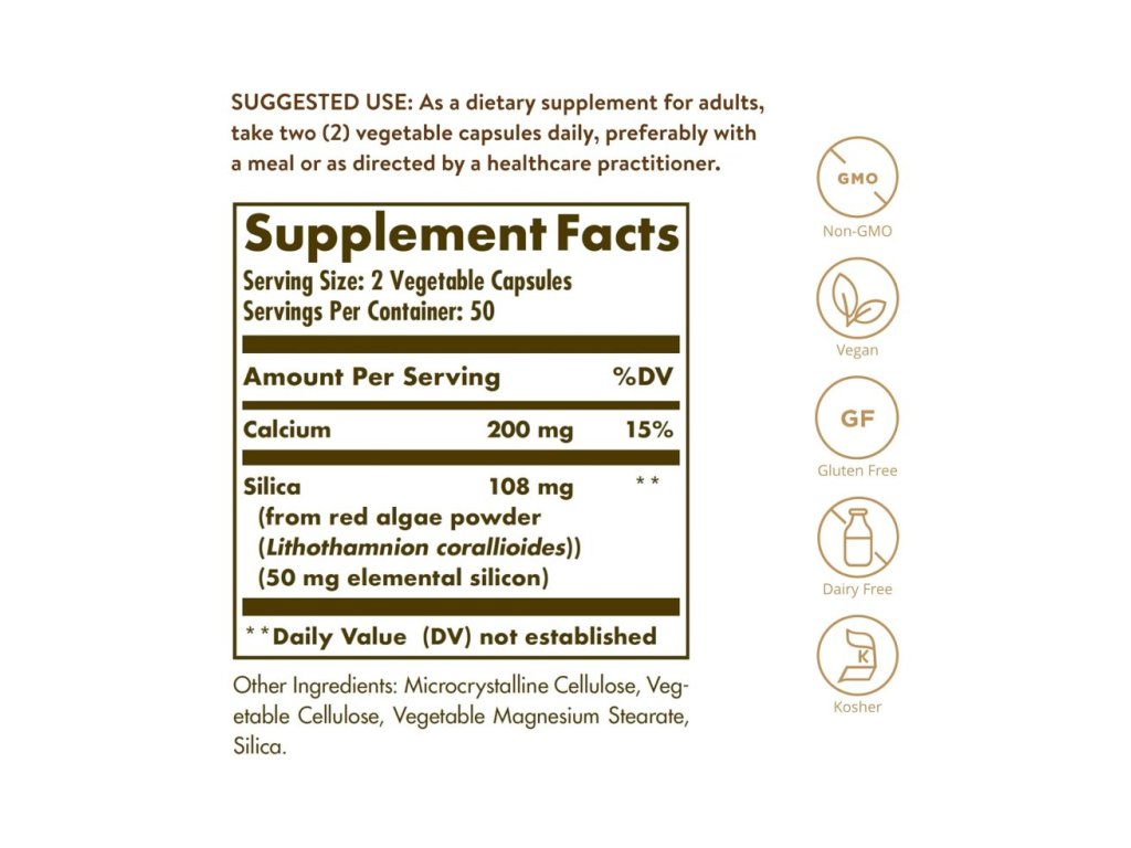 Silicio (Lithothamnion corallioides, polvo de algas rojas, 50 mg de silicio elemental): 108 mcg