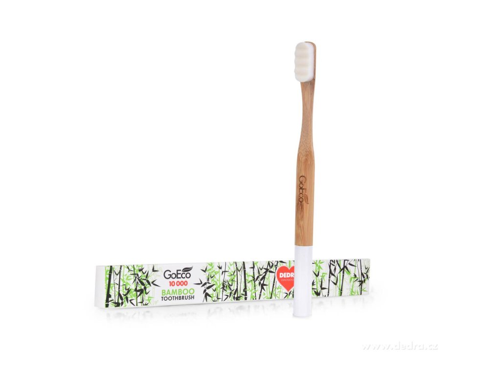 El cepillo de dientes de bambú puede ser un pequeño cambio, pero incluso los cambios más pequeños pueden contribuir a grandes resultados. Combina a la perfección las mejores propiedades saludables de un cepillo de dientes con el respeto al medio ambiente. Cepillo de dientes GoEco® BAMBÚ 10.000 FIBRAS fabricado con bambú de alta presión y cerdas muy suaves y densas para una limpieza dental delicada. Dimensiones: altura de las cerdas aprox. 1 cm, longitud de la superficie de limpieza del cepillo aprox. 2,3 cm, diámetro del mango aprox. 1,3 cm, longitud total del cepillo 19 cm.