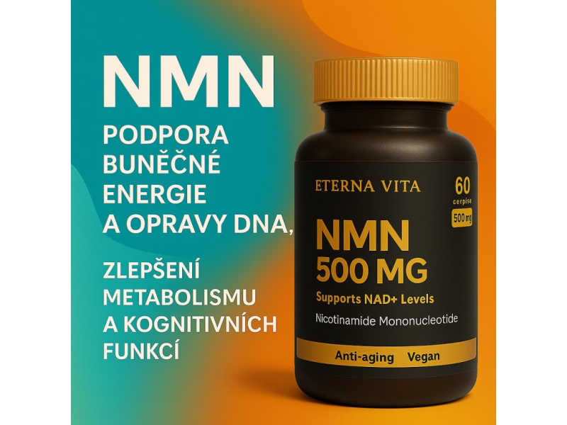 Eterna Vita NMN 500 mg – podpora buněčné energie, zdravého stárnutí a kognitivních funkcí. Prémiový doplněk stravy s vysokou čistotou NMN.