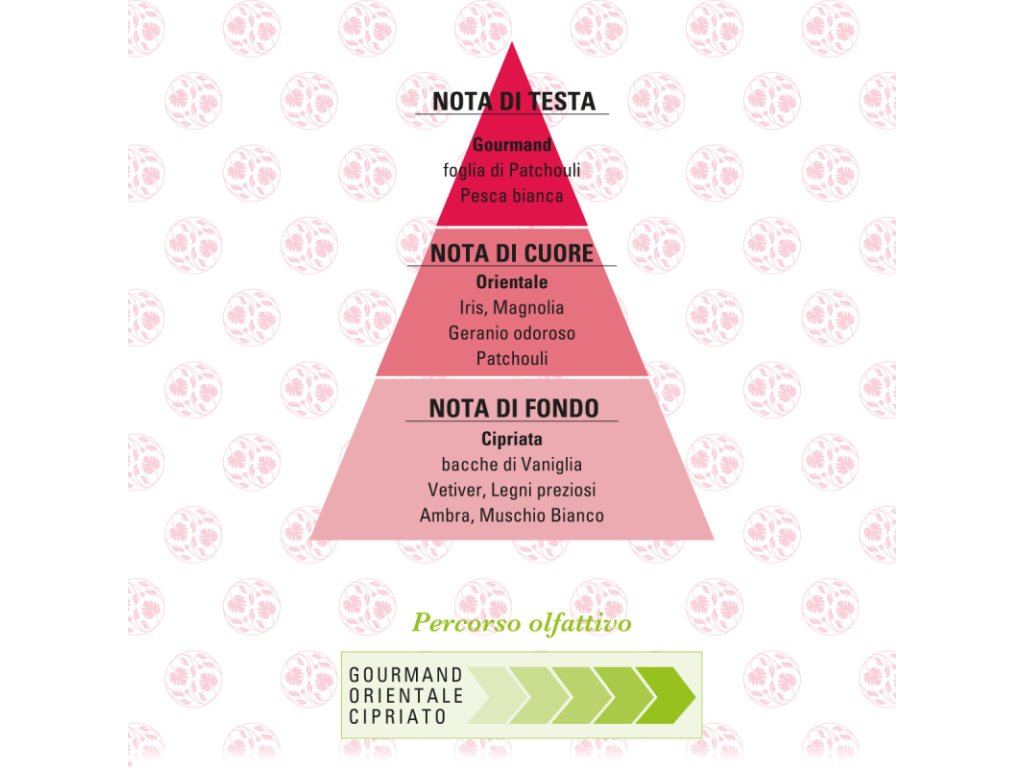 Vůně inspirovaná touhou po útěku do jedinečného světa plného svůdnosti a kreativity s odvážnými voňavými tóny. Vrchní tóny okouzlí sladkostí bílé broskve, která plynule přechází do srdce tvořeného vznešenými květy kosatce a magnólie spolu s podmanivým pačuli. Intenzivní základ vůně tvoří vanilka, ambra, vzácné dřeviny a vetiver, vytvářející fascinující a neodolatelnou směs, která podnítí ty nejsmělejší sny.