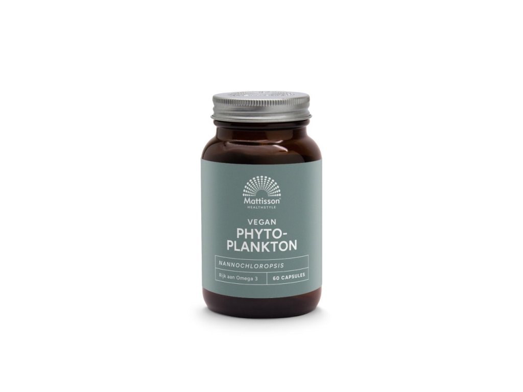 Mattisson Vegan Phytoplankton – Nannochloropsis (60 capsules). Source naturelle d'acides gras oméga-3 EPA issus de phytoplancton marin. 100 % végétal, pureté testée, convient aux végétaliens.