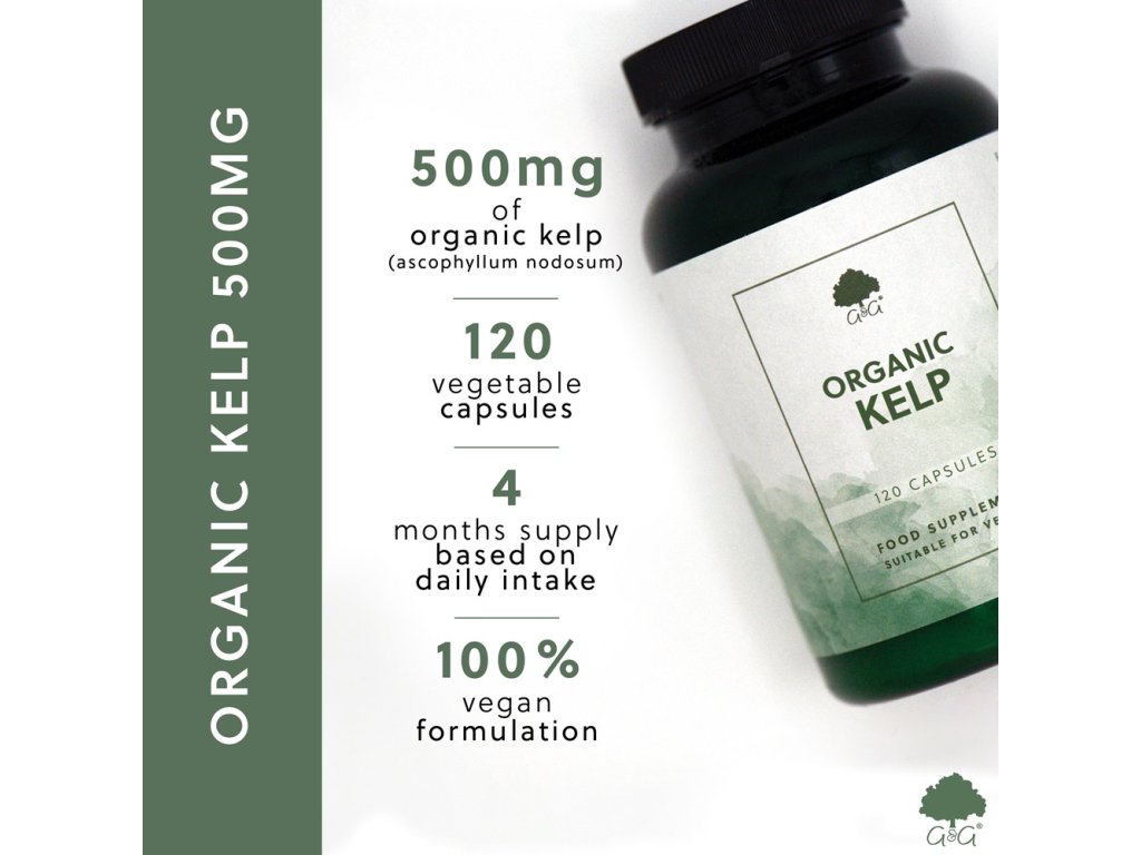 Obsahuje 350 μg jódu Certifikovaný organický doplněk Pochází z Islandu Doplněk vhodný i pro vegetariány i vegany CO JE KELP?KELP je mořská chaluha známá jako jeden z nejlepších zdrojů jódu a dalších stopových prvků. V přírodě se jedná o druh velké hnědé mořské řasy, která roste po celém světě v mělkých slaných vodách bohatých na živiny nedaleko pobřeží. ORGANICKÝ DOPLNĚK STRAVY Z MOŘSKÝCH ŘASDoplněk stravy z organické řasy (Ascophyllum nodosum) se vyrábí z čisté řasy pocházející z Islandu a je certifikovaný jako přírodní produkt bez kontaminantů přenášených oceánem, toxických kovů a mikrobiálních patogenů. Doplněk stravy má certifikaci od Soil Association. Mořská řasa byla pečlivě zpracována tak, aby v každé kapsli bylo 350 μg jódu. CO ŘASY DĚLAJÍ?KELP obsahuje velké množství jódu, který podporuje kognitivní funkce, metabolismus poskytující energii i správné fungování nervového systému či štítné žlázy. Dále pak má pozitivní dopad na pokožku a produkci hormonů štítné žlázy. BEZ PŘÍDAVNÝCH LÁTEK |
