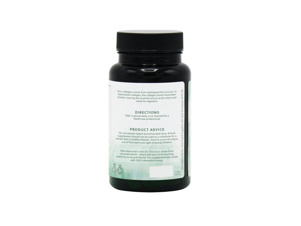 Hydrolyzovaný mořský kolagen typu I v rostlinné kapsli. Podporuje zdraví pokožky, kloubů, šlach, chrupavek a kostí. Každá kapsle obsahuje 400 mg kolagenu. Balení 60 kapslí – dvouměsíční zásoba.