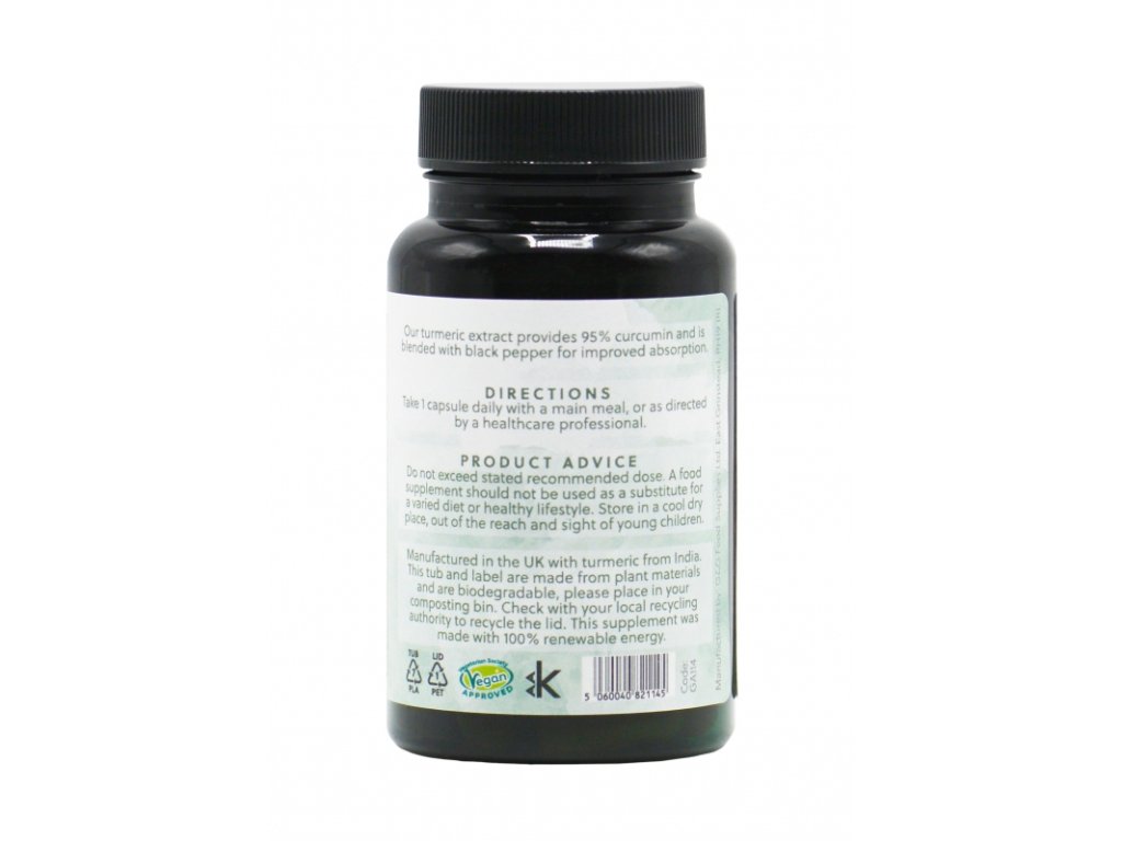 Naše Kurkuma a kurkumin je směs kořene kurkumy a extraktu z kurkumy, která poskytuje 95 % kurkuminoidů – nejvyšší dostupná koncentrace. Některé kurkuminové produkty používají extrakt, který poskytuje 85 % kurkuminoidů. Kurkumin je složkou kurkumy, která obsahuje všechny prospěšné vlastnosti. V potravinových zdrojích kurkumy tvoří kurkumin pouze 3 %.