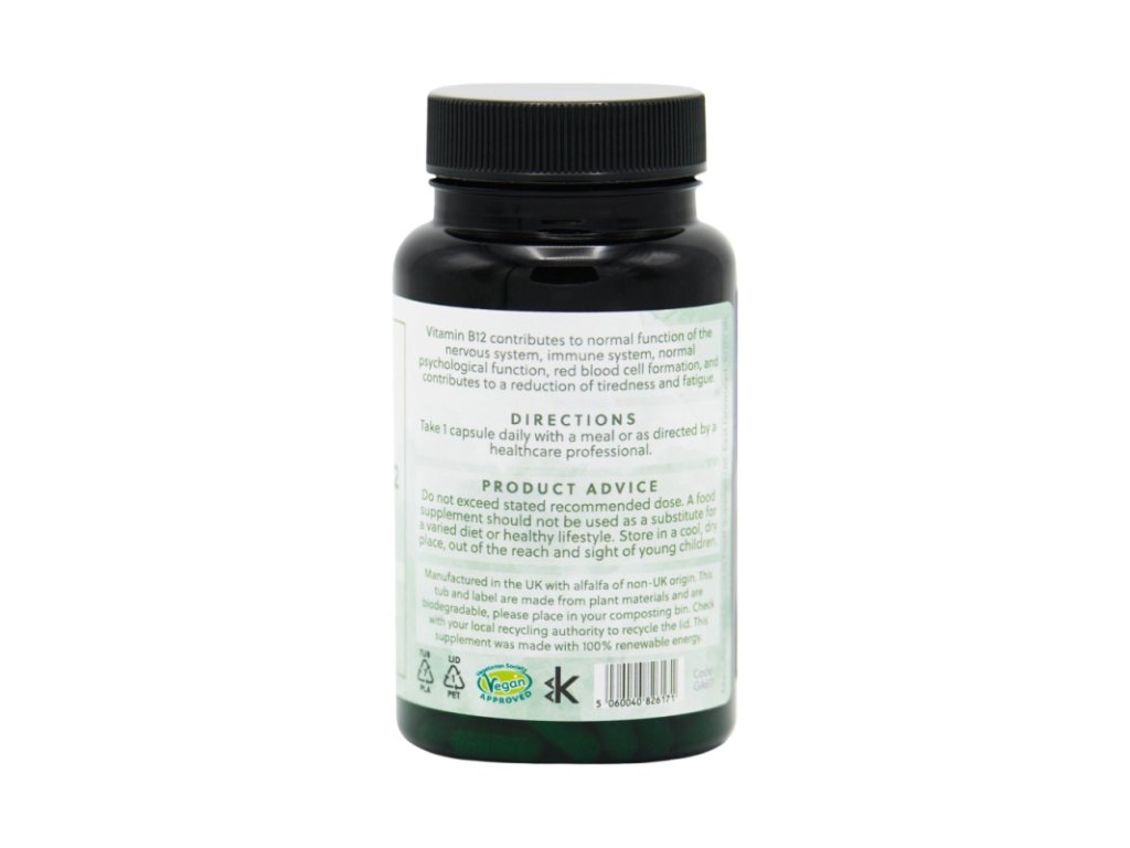Vitamin B12 přispívá ke zdravé výživě mnoha způsoby. Patří mezi ně snížení míry únavy a vyčerpání, normální energetický metabolismus a udržování červených krvinek. B12 také přispívá k normální funkci nervového systému a normální psychické činnosti.