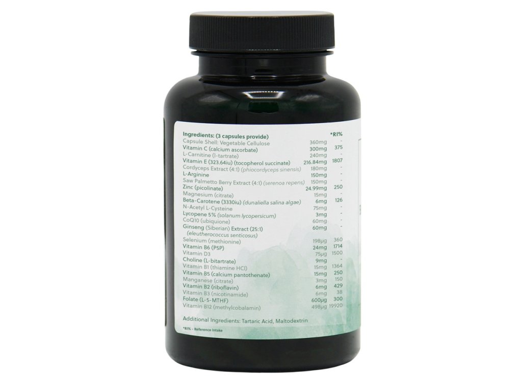 Komplexní doplněk stravy pro podporu mužské plodnosti a reprodukce – obsahuje cílenou kombinaci zinku a selenu pro spermatogenezi, antioxidantů (C, E, CoQ10, lykopen) pro ochranu buněk před oxidačním stresem a dalších látek (L-karnitin, L-arginin, NAC, ženšen, cordyceps). Doporučené užívání je 3 měsíce.