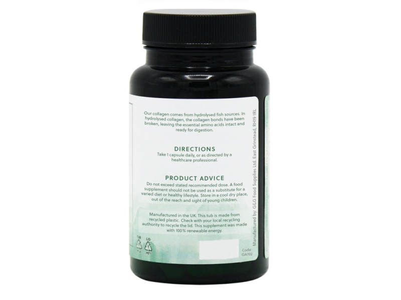 Hydrolyzovaný mořský kolagen typu I v rostlinné kapsli. Podporuje zdraví pokožky, kloubů, šlach, chrupavek a kostí. Každá kapsle obsahuje 400 mg kolagenu. Balení 60 kapslí – dvouměsíční zásoba.