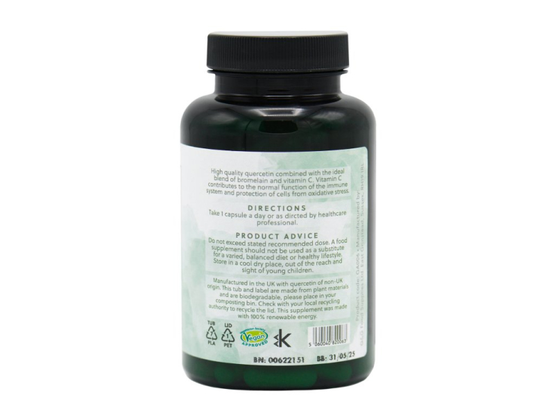 S doplňkem stravy Quercetin komplex od renomované britské firmy G&G Vitamins získáte vysoce kvalitní quercetin v ideální kombinaci bromelainu, bioflav...