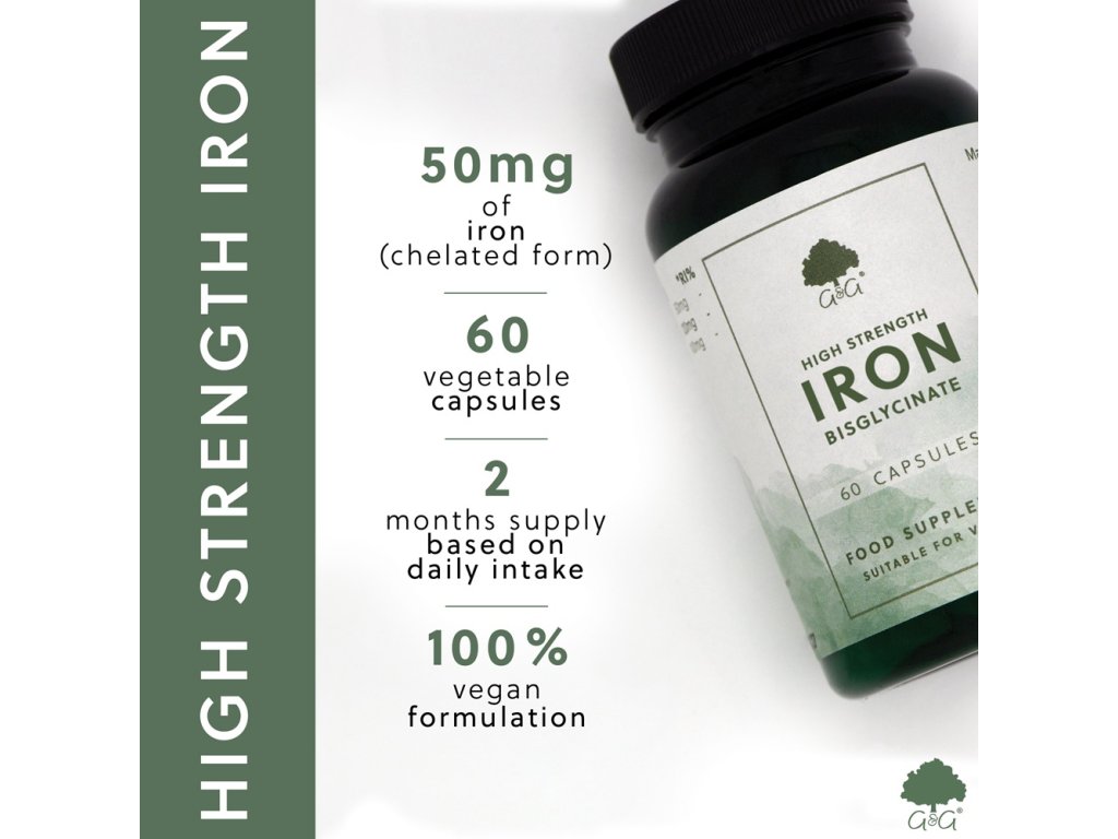 Náš minerální doplněk železa obsahuje čistý bisglycinát železa, chelátovou formu železa, pro vytvoření vysoce kvalitního minerálního doplňku. Každá kapsle obsahuje 50 mg elementárního železa v rostlinné kapsli.