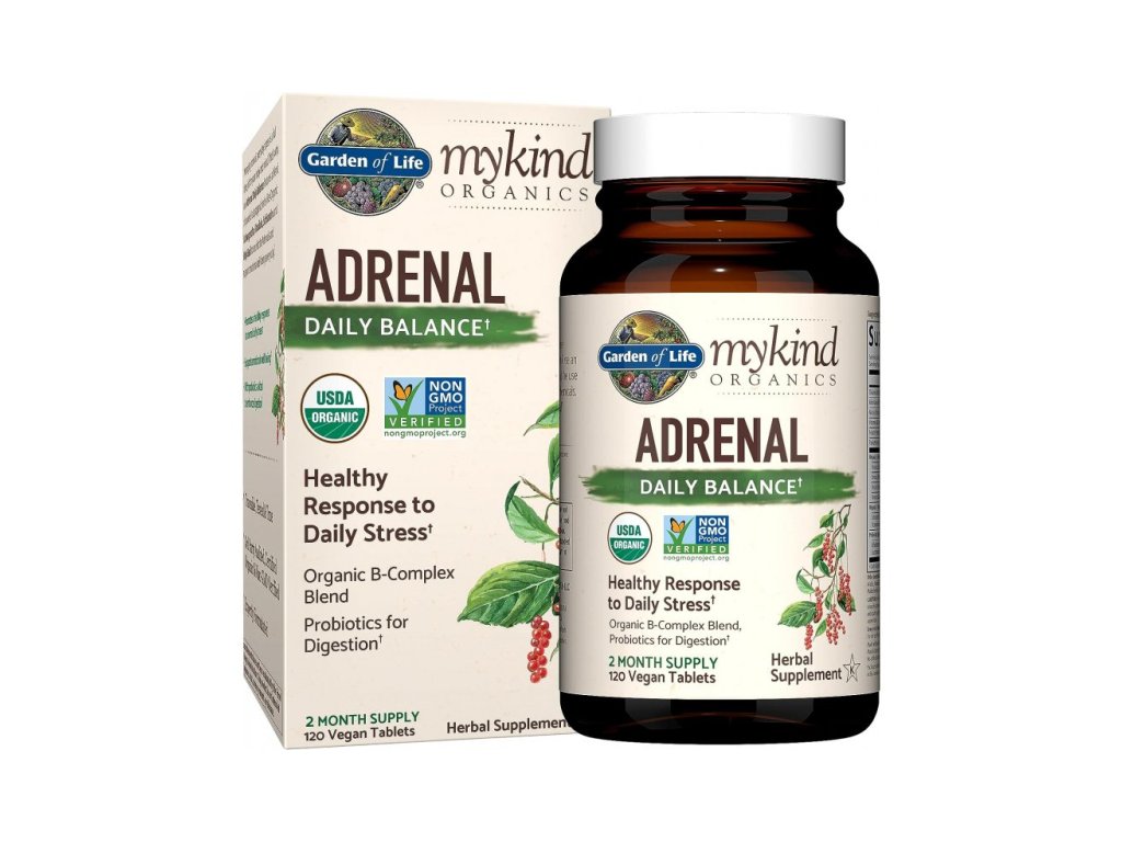 Podpořte své tělo a mysl v každodenním stresu s rostlinným doplňkem stravy Garden of Life Mykind Organics Adrenal Daily Balance. Obsahuje adaptogenní byliny, vitaminy skupiny B a probiotika pro emocionální rovnováhu, odolnost proti stresu a snížení únavy.