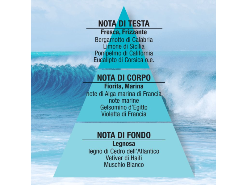Dopřejte si svěží a živou vůni inspirovanou mořským vánkem a citrusovými tóny. Tento parfém začíná kalábrijským bergamotem a sicilským citronem, které přecházejí do tónů mořských řas a květinového akordu jasmínu a fialky. Základ vůně tvoří dřevité tóny cedru a vetiveru, zjemněné hedvábným pižmem. Perfektní volba pro ty, kteří hledají svěžest, energii a harmonii inspirovanou přírodou.