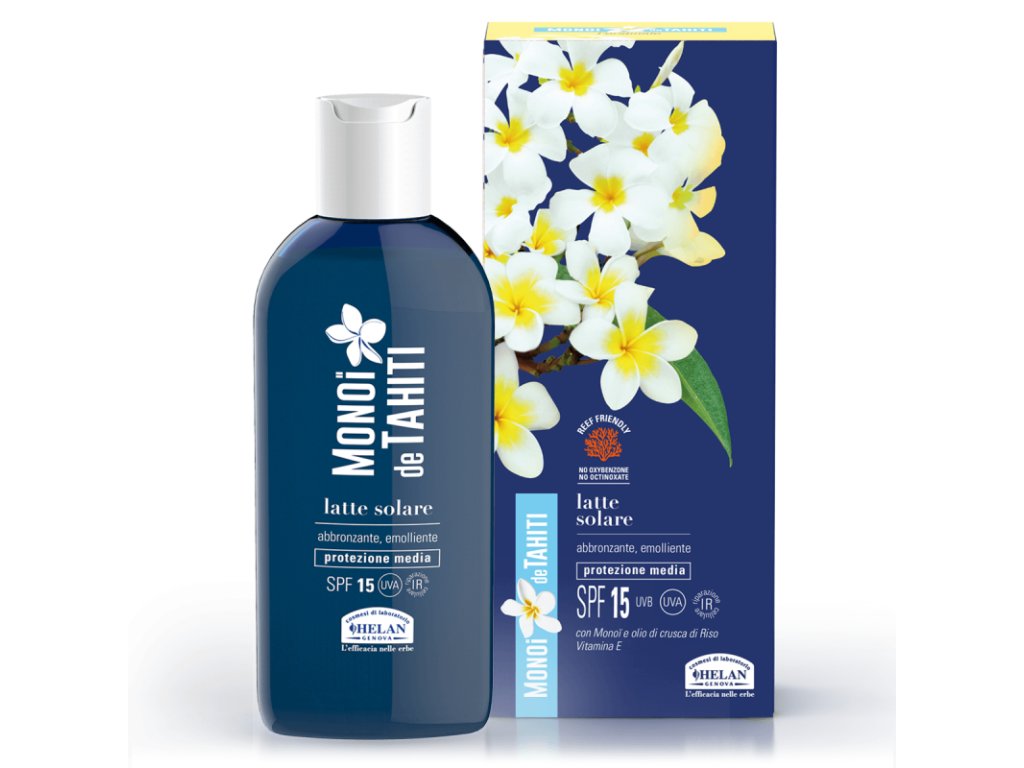 Helan Monoï de Tahiti Soothing Suntanning Milk SPF 15 je opalovací mléko se střední ochranou, které podporuje krásné a intenzivní opálení. Obsahuje čisté Monoï, hydratuje pokožku a zanechává ji jemnou a hedvábnou. Luxusní vůně.