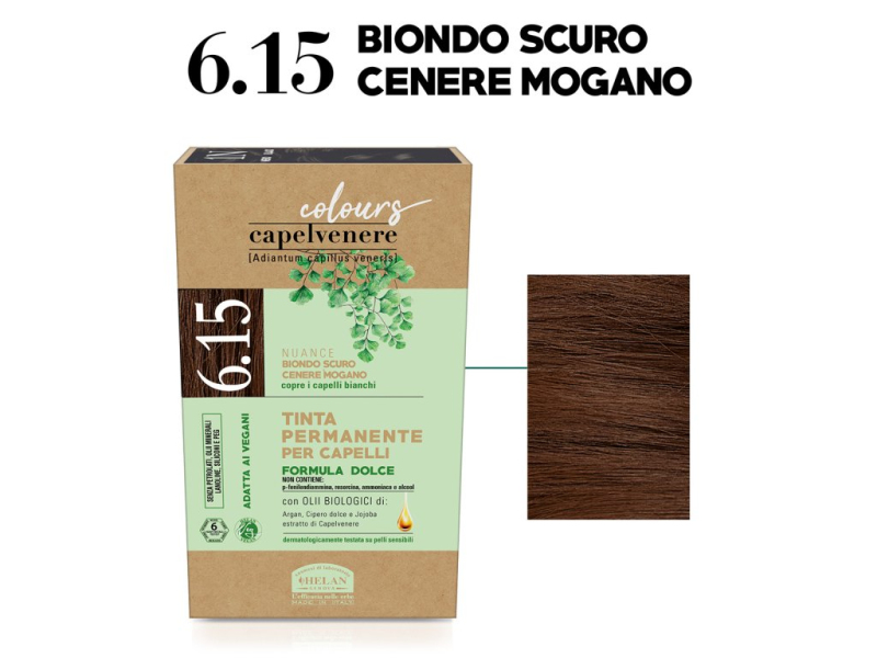 Capelvenere Colours – šetrná permanentní barva na vlasy bez amoniaku, PPD a rezorcinolu. Dermatologicky testovaná, vhodná pro citlivou pokožku. Obsahuje organické oleje, kompletní sadu péče a perfektní krytí šedých vlasů.
