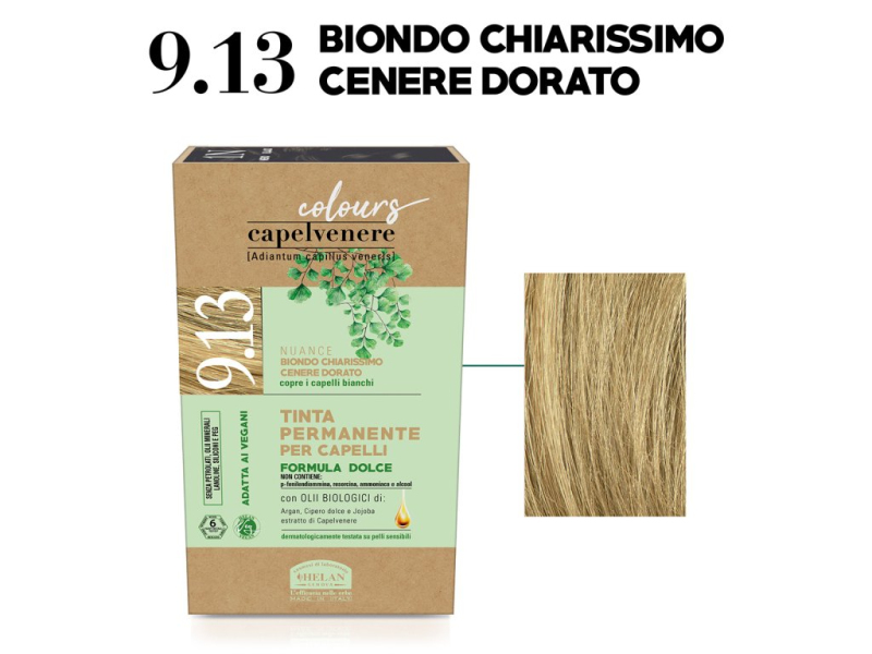 Capelvenere Colours je permanentní barva na vlasy bez amoniaku, PPD, rezorcinolu a alkoholu, vhodná i pro citlivou pokožku. Obsahuje výživné organické oleje a kompletní péči – od ochrany pokožky, přes barvení až po kondicionér a lesk.