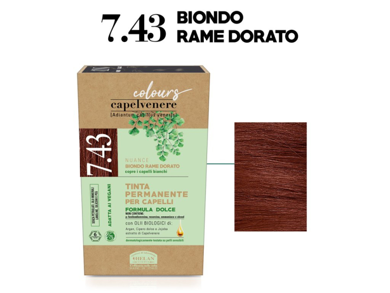 Capelvenere Colours – šetrná permanentní barva na vlasy bez amoniaku, PPD a rezorcinolu. Dermatologicky testovaná, vhodná pro citlivou pokožku. Obsahuje organické oleje, kompletní sadu péče a perfektní krytí šedých vlasů.