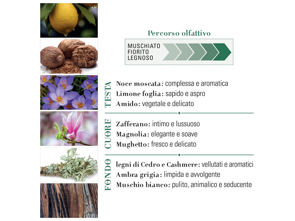 cedrové dřevo, kašmírové dřevo, ambra, bílé pižmo