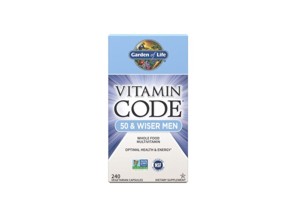 Podržite svoje zdravlje s Garden of Life Vitamin Code 50 & Wiser Men, posebno razvijenom formulom za muškarce starije od 50 godina. Ova višesastojna RAW formula pruža vitamine, minerale, antioksidanse i nutritivne kofaktore iz 23 organski uzgojenog voća i povrća, a sadrži i žive probiotike i enzime za zdravu probavu.