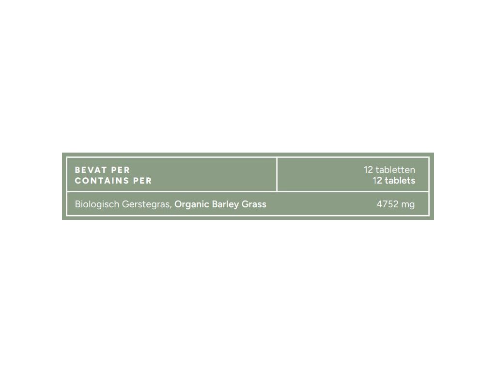 Sastojci 99% organska ječmena trava, 1% silicijev dioksid.