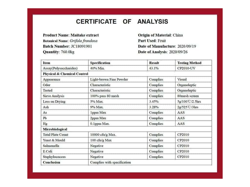 Különleges kettős extrakciós módszerrel előállított maitake kivonat. Több mint 40% poliszacharid tartalom.