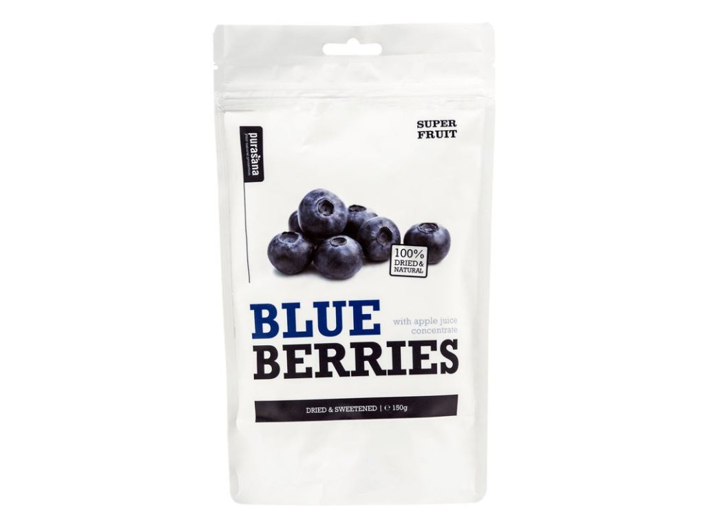 Si tratta di un metodo speciale e delicato, in cui l'alimento viene essiccato gradualmente attraverso diversi passaggi, tra cui un bagno di transizione nel succo di mela, che conferisce a questi frutti una freschezza e un sapore inconfondibili. Parte di questa procedura, che mira a preservare al massimo la quantità di nutrienti, è anche l'utilizzo successivo di una pellicola protettiva a base di olio di girasole (da agricoltura biologica), che impedisce l'eccessiva essiccazione del prodotto e la perdita delle sue proprietà organolettiche ottimali.I mirtilli hanno un sapore tipico e distintivo, numerosi effetti positivi e la capacità di tingersi di blu, aggiungendo così un tocco di colore e sapore ai piatti. I mirtilli Purasana sono molto apprezzati per il loro sapore fruttato.