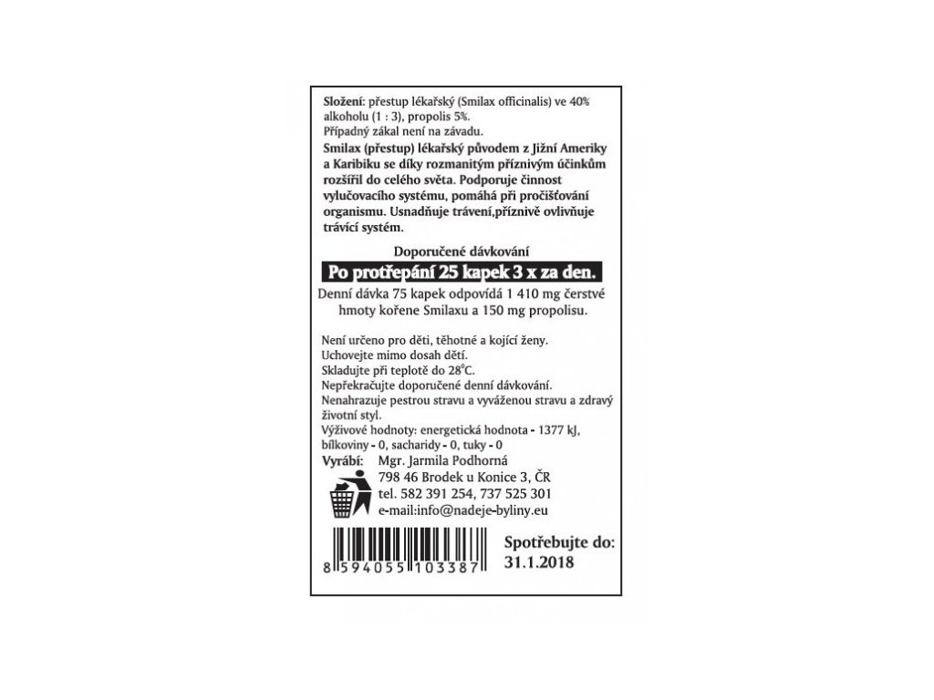 Smilax (di transizione) medicinale, originario del Sud America e dei Caraibi, si è diffuso in tutto il mondo grazie ai suoi molteplici effetti benefici. Supporta l'attività dell'apparato escretore, aiuta a depurare l'organismo. Facilita la digestione, ha un effetto positivo sull'apparato digerente.