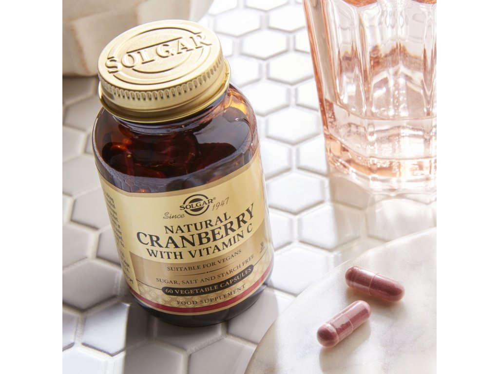 Integratore alimentare con mirtilli rossi. Mirtilli rossi con vitamina C.
