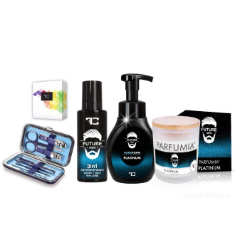 Luxusní pánská dárková sada PLATINUM obsahuje manikúru, sójovou eko-svíci, pěnové mýdlo, antiperspirant a elegantní dárkové balení. Svěží dřevitá vůně...