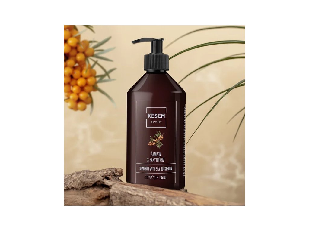Kesem Šampon s rakytníkem je šetrný, ale účinný přírodní šampon určený pro dlouhodobou a pravidelnou péči o vlasy i vlasovou pokožku. Jeho složení vychází z osvědčené kombinace rakytníkového oleje, minerálů, soli a vody z Mrtvého moře a dalších přírodních extraktů.
