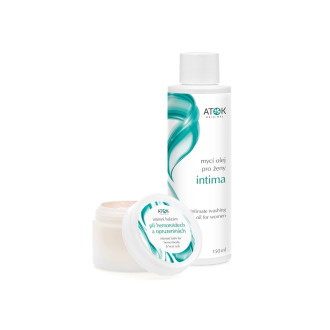 Intimní set s mycím olejem a balzámem pro péči při hemoroidech a podráždění. Zklidňuje, regeneruje a chrání citlivou oblast konečníku.